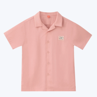 Coral Abstract Print Open Collar Shirt - Coral Abstract